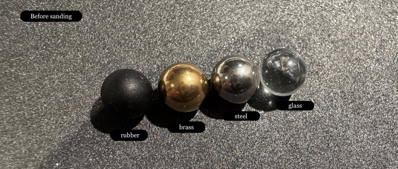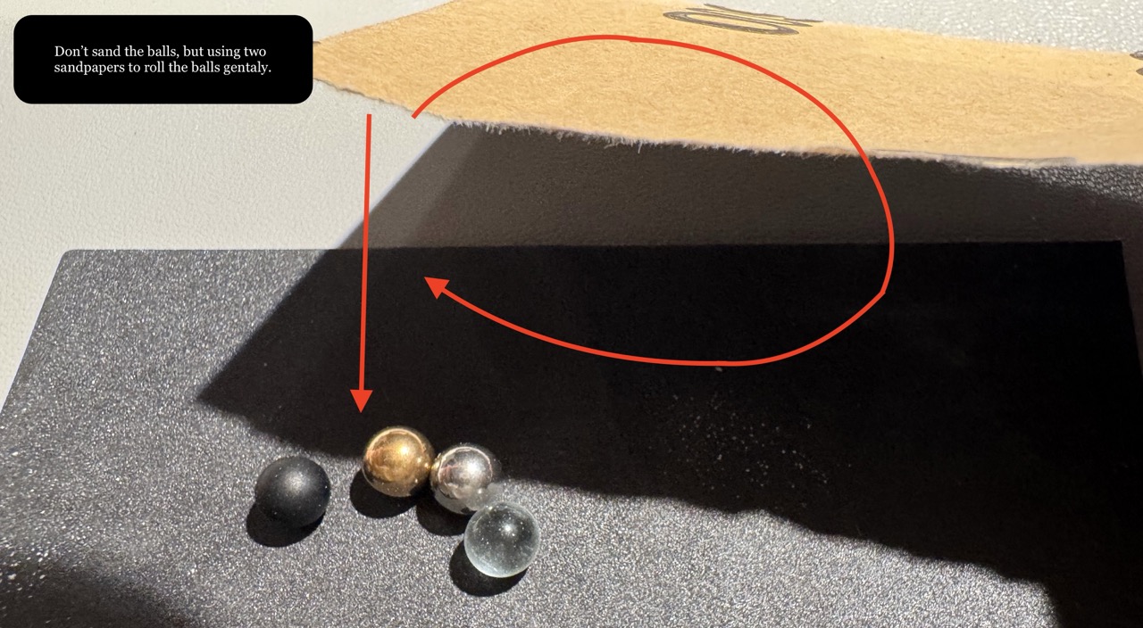 The Technique: Do not sand the ball directly with your fingers. Instead, place the ball onto the sandpaper and roll it gently across the surface until the finish is visibly matte and textured.