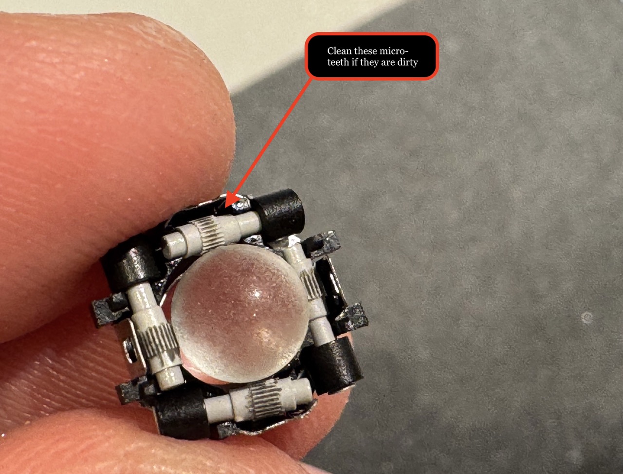 - The Result: This “roughed-up” surface allows the 5.5mm ball to catch the tiny teeth of the axes, providing much higher sensitivity and eliminating the mechanical play found in the original part.